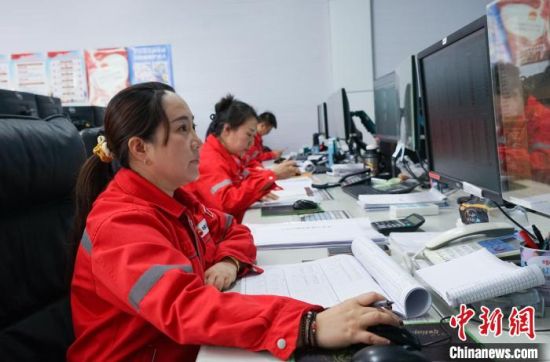 9月25日,涩北气田工作人员正在实时监测天然气产量。中新社记者 马铭言 摄