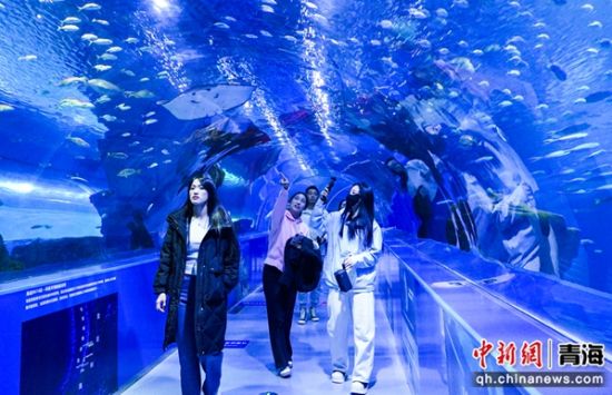 图为运动员在西宁新华联童梦乐园海洋馆内参观。 马铭言 摄