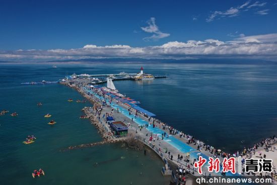 图为青海湖二郎剑景区众多游客前来观光。 张忠苹 摄