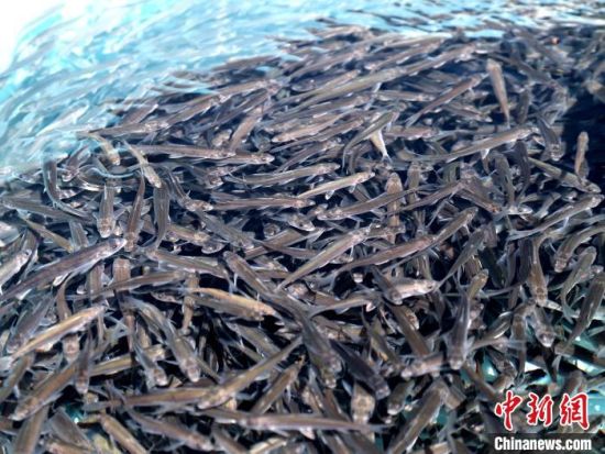 6月11日,青海省海北州刚察县即将放流的青海湖裸鲤鱼苗。张忠苹 摄