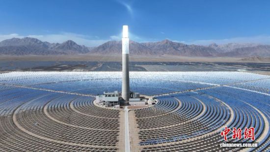 4月15日,位于青海省海西蒙古族藏族自治州德令哈市境内的青海中控50兆瓦光热电站。(无人机照片) 马铭言 摄