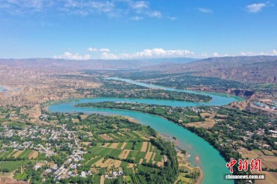 资料图为航拍海南州贵德县境内黄河两岸麦田。(无人机照片) 马铭言摄