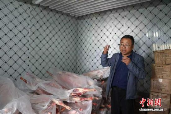资料图为青海省海南藏族自治州共和县一家“光伏羊”销售商家展示冷冻储存的羊肉。马铭言摄